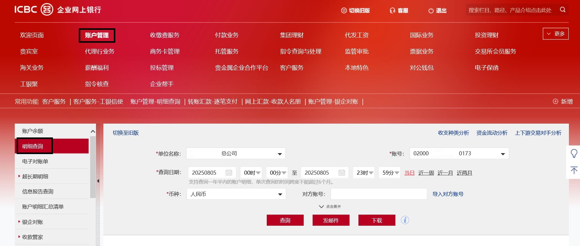 2.此功能仅可查询注册网银后的历史明细,注册前的请通过电子对账单查询功能查询;